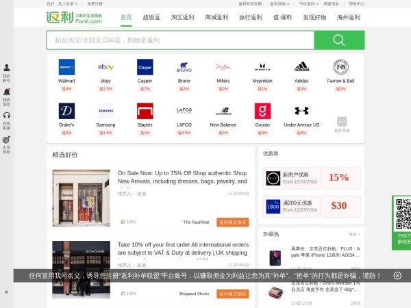返利网(全称:精选全网购物优惠!为美好生活而省)于2024年11月08日收录在本站生活购物导航分类,并成功建立了索引服务,为用户提供查找/检索服务。