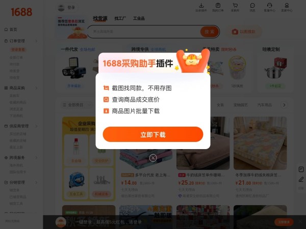 1688.com以其丰富的商品种类和低廉的价格著称,被誉为“中国电商的源头货盘”,汇聚了产业带的源头厂、源头货和源头价。平台上的商品种类繁多,包括不锈钢板、油动无人直升机、羊绒线、电工胶带、铝单板等多种工业品和消费品。此外,1688.com还提供了多种交易方式和支付方式,如支付宝、信用卡支付、诚e赊等,确保交易的便捷和安全