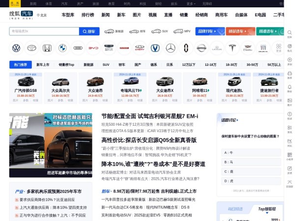 搜狐汽车为您提供最新汽车报价,汽车图片,汽车价格大全,最精彩的汽车新闻、行情、评测、导购内容,是提供信息最快最全的中国汽车网站。