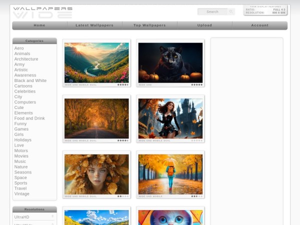 一个专门提供高质量壁纸的网站,提供多种分辨率的壁纸下载,包括4K壁纸、5K壁纸、8K壁纸等。网站类型丰富,涵盖超级英雄、游戏、艺术家、电影、名人、汽车、自然风光、女孩、电视节目、抽象艺术、动漫、音乐、摄影、计算机、动物等多个类别。