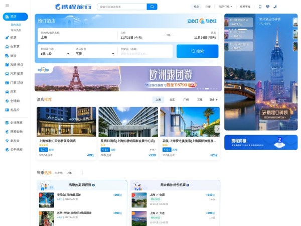 中国领先的旅游搜索引擎,目前全球最大的中文在线旅行网站