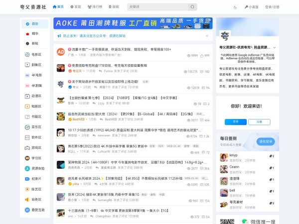 网盘资源社是一个综合免费资源共享交流论坛并有众多网盘爱好者聚集,这里有众多板块如:4k影视剧集,无损音乐,学习资料,软件教程等,注册即可获取和共享资源,专注于打造全面的优质资源共享网站!