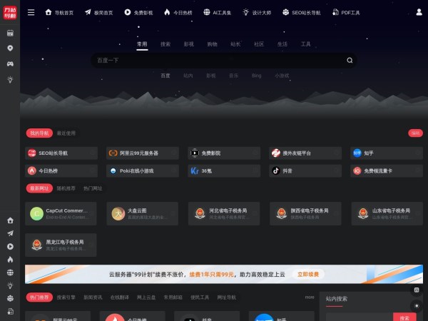 致力于为用户提供方便快捷实用的网址导航服务,帮助用户快速访问常用网站,满足用户的上网需求!收录的网站涵盖了生活服务、实用工具、资源发现、AI领域、 影音娱乐、设计灵感、站长工具、开发资源、探索发现等多个领域,让您的上网体验更加丰富多彩!