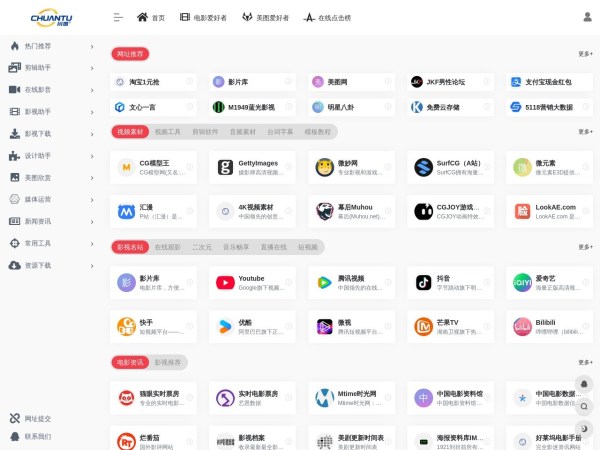 川图在线打造属于视频博主综合性的资源导航网站,让您在短视频制作中直接获得需要的剪辑工具、AI文案助手、高清视频素材、电影视剧下载,川图在线拥有超强的聚合搜索引擎,精选大量实用的网址和视频下载资源!