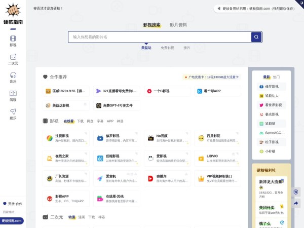 硬核影视指南是一家专注于收录高清影视站的网站,为用户提供高清、免费的优质影视网站,无论是高清免费在线观看,还是各种网盘下载,全部都可以找到。硬核影视指南,够高清才是真硬核!