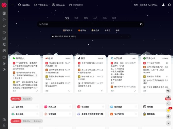 一个非常棒的私人云收藏夹网站!高价值实用网址、优质网站收录平台!收录了各种五花八门网址于一个站,整合了多个常用搜索于一个框,集便捷、简洁、高效、实用于一身,一个框的mini主页还可以设置为浏览器主页,这样一个功能丰富的导航网站:海纳百川,网罗一框!