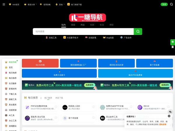致力于为用户提供方便快捷实用的网址导航服务,帮助用户快速访问常用网站,满足用户的上网需求!收录的网站涵盖了生活服务、实用工具、资源发现、AI领域、 影音娱乐、设计灵感、站长工具、开发资源、探索发现等多个领域,让您的上网体验更加丰富多彩!
