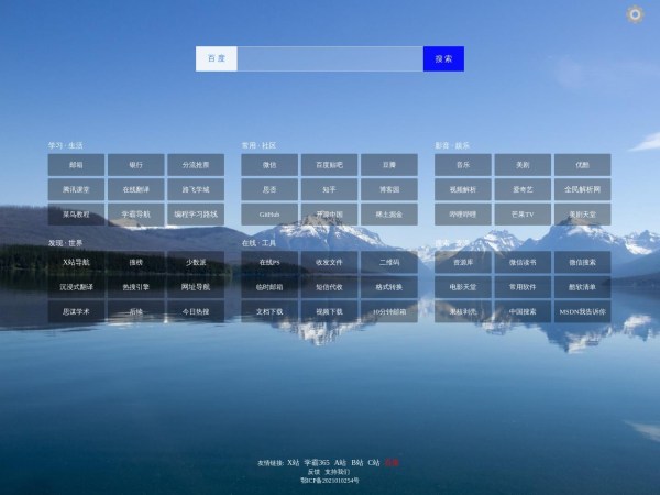 一个非常棒的私人云收藏夹网站!高价值实用网址、优质网站收录平台!收录了各种五花八门网址于一个站,整合了多个常用搜索于一个框,集便捷、简洁、高效、实用于一身,一个框的mini主页还可以设置为浏览器主页,这样一个功能丰富的导航网站:海纳百川,网罗一框!