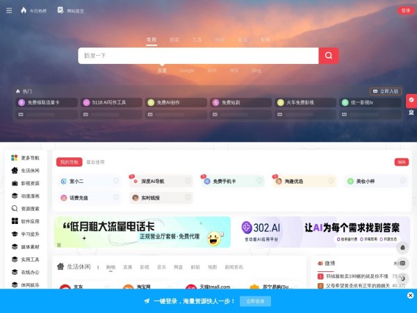 致力于为用户提供方便快捷实用的网址导航服务,帮助用户快速访问常用网站,满足用户的上网需求!收录的网站涵盖了生活服务、实用工具、资源发现、AI领域、 影音娱乐、设计灵感、站长工具、开发资源、探索发现等多个领域,让您的上网体验更加丰富多彩!