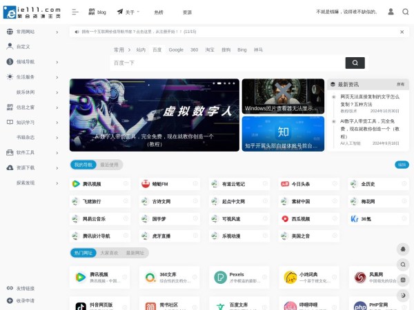 浏览器主页_ie111导航,一个互联网全职业聚合资源上网主页,手动收录实用网址、工具、素材、软件等,用户也能自己添加喜欢的网站,是网民个性实用的中文上网主页。除汇集生活、娱乐等常用网址,也收录了