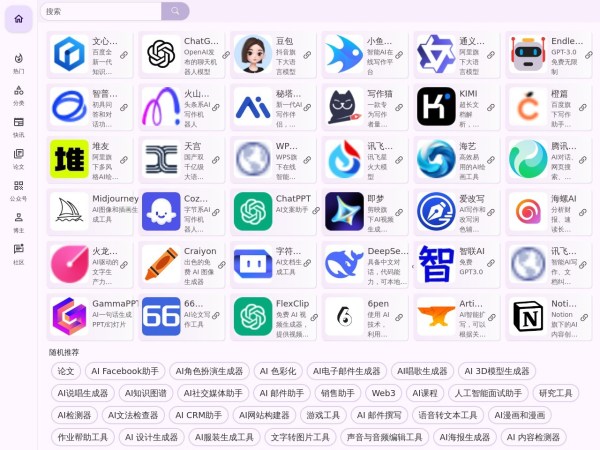 收录国内外数百个AI工具,包括AI写作工具、AI图像生成和背景移除、AI视频制作、AI音频转录、AI辅助编程、AI音乐生成、AI绘画设计、AI对话聊天等AI工具集合大全