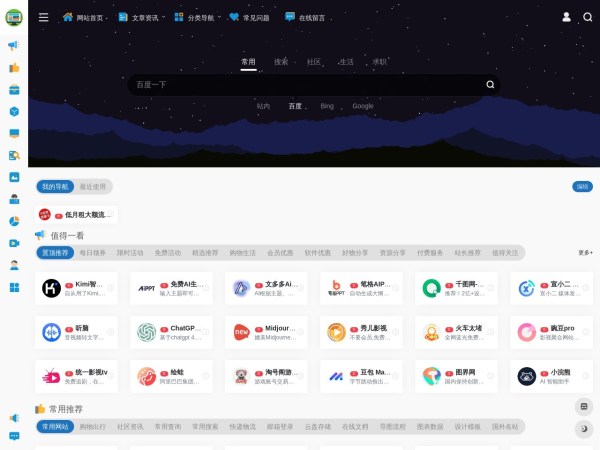 致力于为用户提供方便快捷实用的网址导航服务,帮助用户快速访问常用网站,满足用户的上网需求!收录的网站涵盖了生活服务、实用工具、资源发现、AI领域、 影音娱乐、设计灵感、站长工具、开发资源、探索发现等多个领域,让您的上网体验更加丰富多彩!