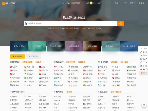 致力于为用户提供方便快捷实用的网址导航服务,帮助用户快速访问常用网站,满足用户的上网需求!收录的网站涵盖了生活服务、实用工具、资源发现、AI领域、 影音娱乐、设计灵感、站长工具、开发资源、探索发现等多个领域,让您的上网体验更加丰富多彩!