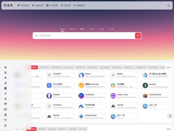 致力于为用户提供方便快捷实用的网址导航服务,帮助用户快速访问常用网站,满足用户的上网需求!收录的网站涵盖了生活服务、实用工具、资源发现、AI领域、 影音娱乐、设计灵感、站长工具、开发资源、探索发现等多个领域,让您的上网体验更加丰富多彩!