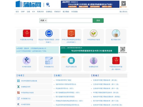 蒲标网(全称:中国药典、药品标准、法规在线查询)于2024年11月09日收录在本站生活百科导航分类,并成功建立了索引服务,为用户提供查找/检索服务。