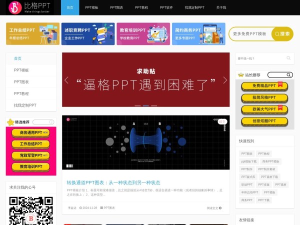 逼格PPT模板网,是一个提供免费ppt模板下载的个人博客网站。除了PPT模板以外,博主李益达还会分享一些免费ppt模板制作教程和素材下载。