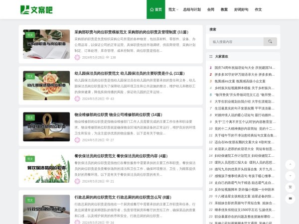 文案吧是一个分享文章内容的免费网站,汇集各种文案、朋友圈说说、签名、句子、祝福语、经典语录,心得体会以及与文章相关的素材内容。上文案吧查找您想要的,希望能帮助到您。