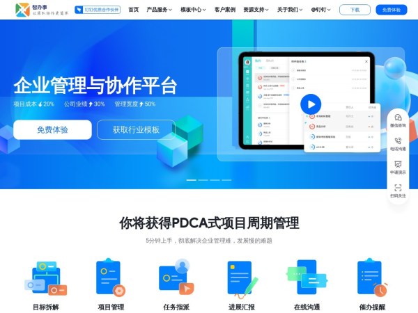 智办事是一款基于“目标+事”为中心的新一代企业管理协作软件,主要功能有目标管理、项目管理、任务协作和绩效管理