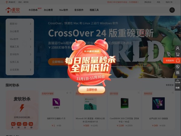麦软网是一家售卖正版软件商城网站,提供有关Mac、思维导图、视频剪辑、文件管理恢复、办公自动化等相关软件行业软件,同时涉及软件行业资讯、使用技巧、等使用教程
