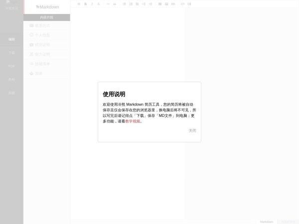 一款专注于互联网从业者的免费简历制作工具,海量简历模板免费使用,免费导出PDF/PNG/MD格式简历,免费制作证件照,内置AI简历助手,一键快速生成简洁大方的高分简历!