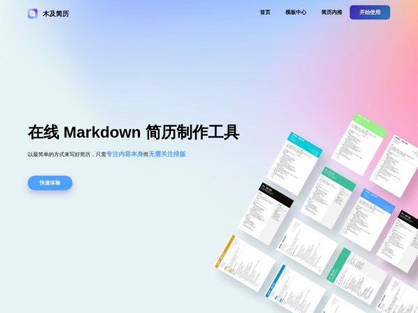 一款专注于互联网从业者的免费简历制作工具,海量简历模板免费使用,免费导出PDF/PNG/MD格式简历,免费制作证件照,内置AI简历助手,一键快速生成简洁大方的高分简历!