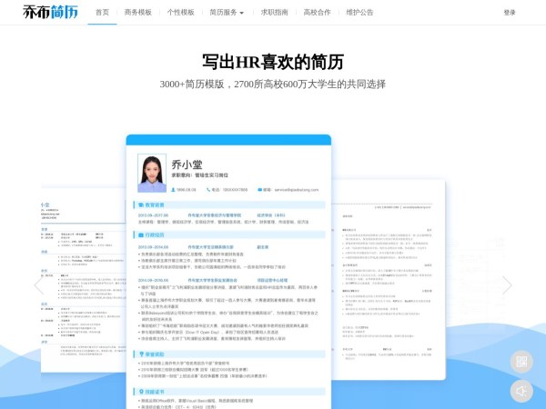 乔布简历(全称:个人空白简历表格|英文简历模板|求职简历模板免费下载 - 乔布简历)于2024年11月10日收录在本站办公招聘导航分类,并成功建立了索引服务,为用户提供查找/检索服务。