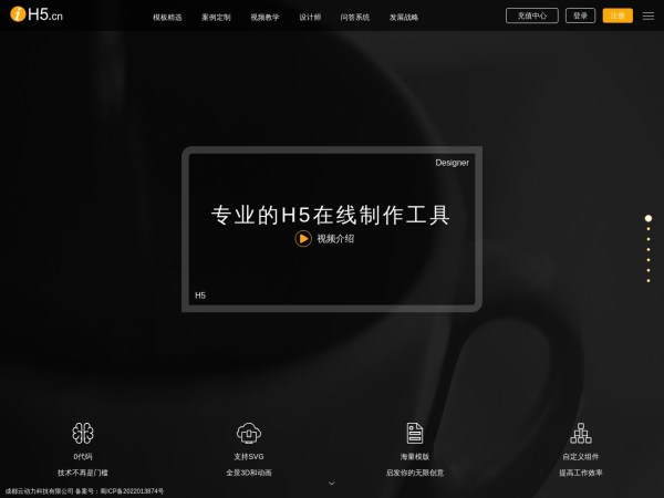 功能强大的H5海报制作工具,可以制作移动端页面与PC端页面