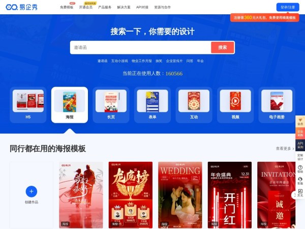 H5海报制作工具,基本和MAKA差不多,主要是提供的模板和素材各有千秋