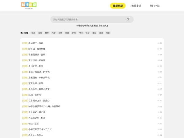 畅读小说网(全称:热门小说免费在线观看-全网小说大全)于2024年11月10日收录在本站资讯小说导航分类,并成功建立了索引服务,为用户提供查找/检索服务。