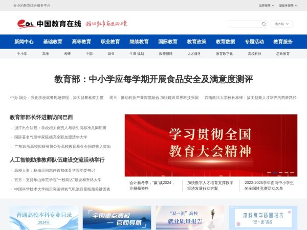 作为中国教育的联结者和赋能者,中国教育在线致力于成为推动中国教育前行的力量。多年来,中国教育在线专注教育领域,坚持满足各类教育需求,对接国内外2000余所高校、3000余所高中,覆盖全国30余个省市,发布各类权威的招考、就业、辅导等权威的教育信息,专注于为国内外各大高校、科研院所、教育机构提供从招生服务,到信息化应用服务,以及“智库服务”等为主的多元化教育服务。