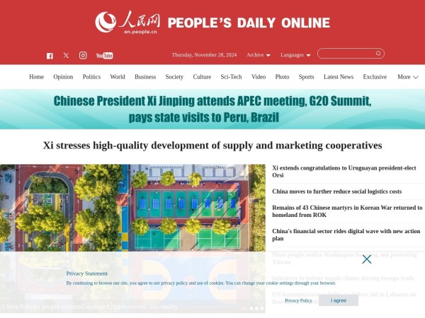 全称:People's Daily Online focuses on China news, China society, China military, Chinese culture, China travel guide, China politics, foreign affairs, business and a lot more.