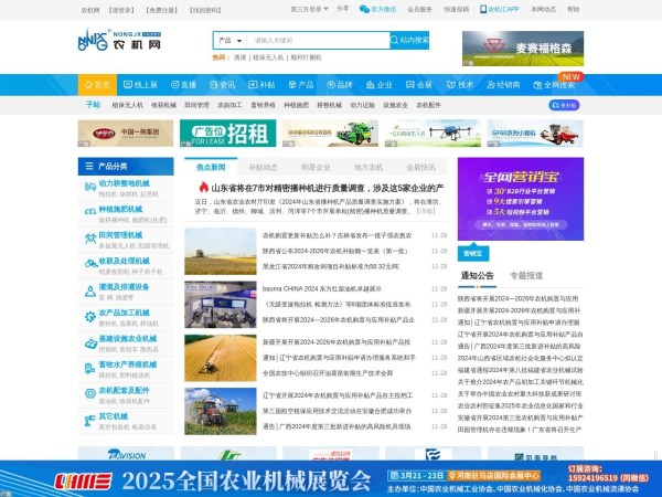 专业为农业机械、农用机械、农机装备企业提供行业资讯、技术、产品、商机、展会等信息,同时提供农业机械、农用机械、农机装备企业直播和线上展会、网络推广等服务,力争把农机网打造