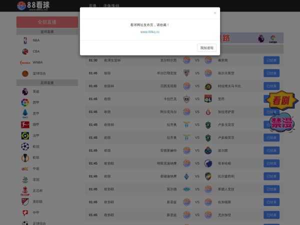 88看球提供高清免费体育直播,NBA在线观看,英超直播,西甲直播,欧冠直播等。全部赛事录像回放,体育新闻资讯。88看球,无插件,免费观看。