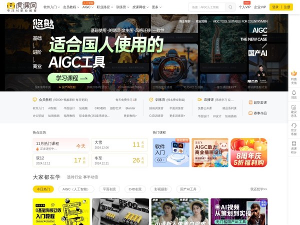 7.9万+视频教程,每天免费学习,虎课网是超过1800万用户信赖的自学平台,拥有海量设计、绘画、摄影、办公软件、职业技能等优质的高清教程视频,用户可以根据行业和兴趣爱好,自主选择学习内容