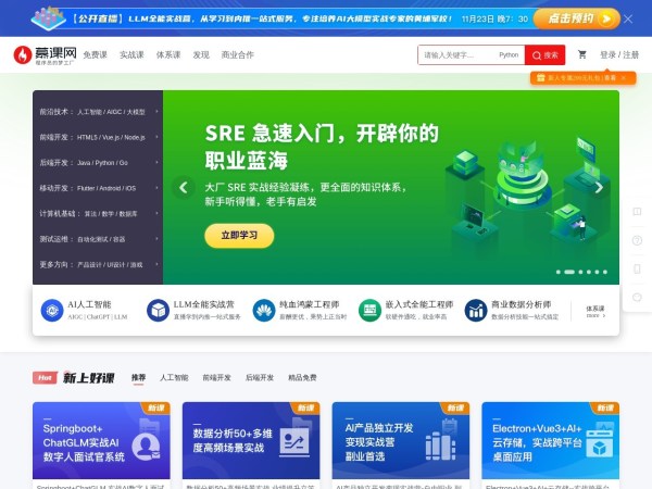 一个免费的网上课堂,开启你的软件工程师生涯
