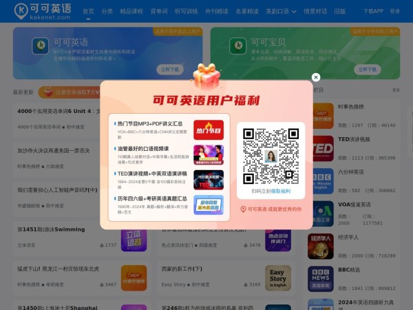 它是由一位B站UP主开发的完全免费英语学习网站,界面简洁清晰,非常良心,而且开发者一直在完善更新这个网站,非常值得尝试。