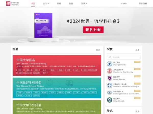 中国最好大学排名、中国最好学科排名、世界大学学术排名(中文版)世界一流学科排名、中国两岸四地大学排名是由软科(www.shanghairanking. cn)发布。是学生高考择校、出国留学和社会各界了解分析国内外大学办学状况的重要参考。
