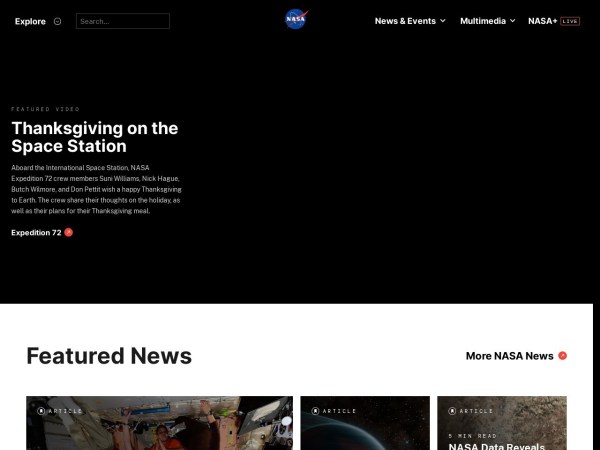 该网站的设计让人有如临太空的感觉,旨在向公众展示NASA的使命、项目、人类在太空的探索、地球与气候的研究、太阳系和宇宙的探索、科学、航空技术以及学习资源等内容。用户可以通过该网站了解NASA的最新新闻、事件、多媒体资料,并参与相关的社交活动和新闻通讯。