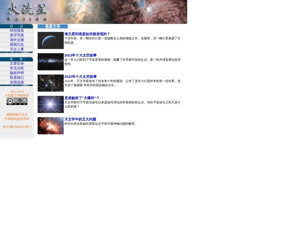 一个有关天文的网站,分类栏目有“特别报道 星空写真 海外文摘 观测日志 天文人事”