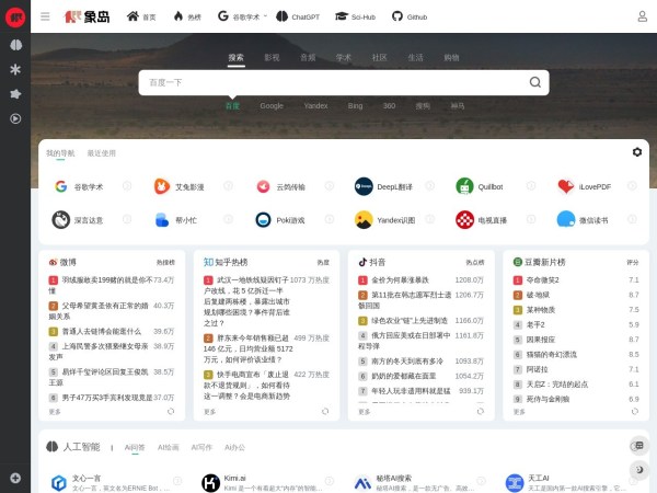 象岛是一个学术网址导航网站,提供了丰富的学术资源,包括谷歌学术Google Scholar镜像站、Scihub、必应学术等,帮助科研人员进行学术研究,快速访问各类学术网站。