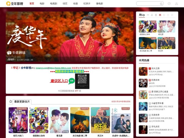 全称:全年影视是一个收集了全网影视资源的在线看电影网站,全年影视的免费资源类型涵盖电影、电视剧、综艺、动漫、纪录片、微电影等,点播资源24小时及时更新。在线看电影就来全年影视,包揽你一整年的视听盛宴!