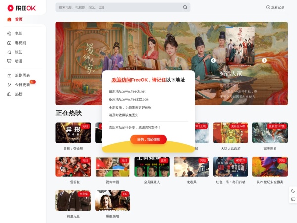 追剧FreeOK为您提供2022最新电视剧、最新电影、动漫番剧、学习课程,蓝光视频免费在线观看服务,无广告不卡,每天第一时间更新!