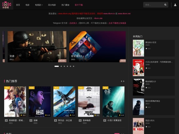 4k影视(全称:带给你不一样的网络观影冲浪体验)于2024年11月14日收录在本站视频电影导航分类,并成功建立了索引服务,为用户提供查找/检索服务。