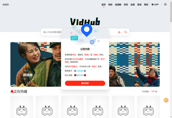 Vidhub视频库为您提供4K蓝光及1080P超高清的专享影音体验,并聚合分享国内外最新最全的电影、电视剧、动漫、综艺等热门视频资源,实时更新,多线路支持流畅在线播放,还有美剧、英剧、韩剧、日剧等众多海外