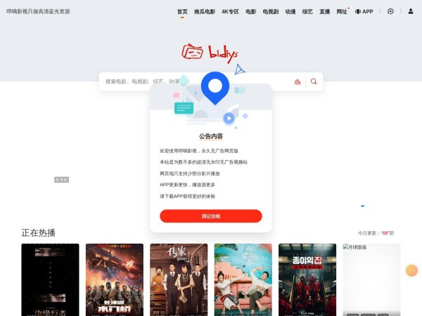 哔嘀影视专注高清,为广大用户提供全网最高清在线观看体验,每天更新大量电影电视剧,无论是国产,欧美剧,韩剧,日剧,国漫,日漫,只要用户需要,大多数情况下都会更新!