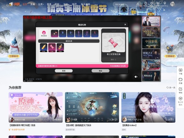 虎牙视频为用户提供好看的在线直播视频,涵盖游戏视频、电竞赛事视频、娱乐视频等免费在线观看,热门游戏绝地求生,王者荣耀,英雄联盟lol,火爆主播直播视频集锦等,更有二次元,户外直播等好看视频在线观看。