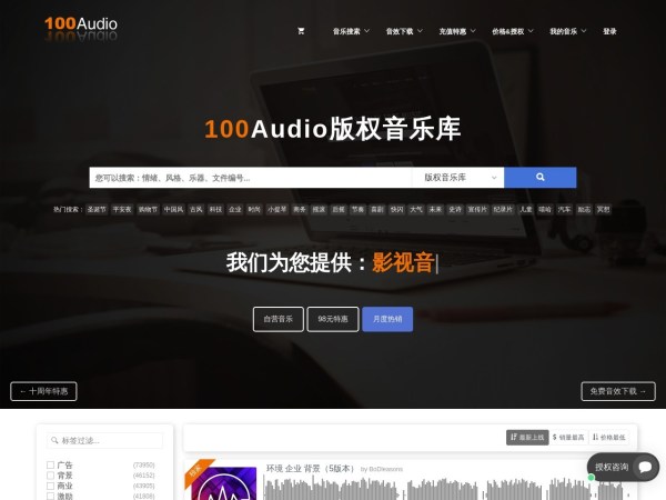 猴子音悦作为版权音乐商用授权购买网站,提供广告配乐素材、游戏视频背景音乐、影视综艺BGM等,满足您自媒体、广播剧、vlog等商用音乐需求,下载高品质正版版权音乐就到猴子音悦。