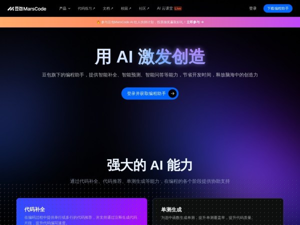 豆包旗下的编程助手,提供智能补全、智能预测、智能问答等能力,节省开发时间,释放脑海中的创造力