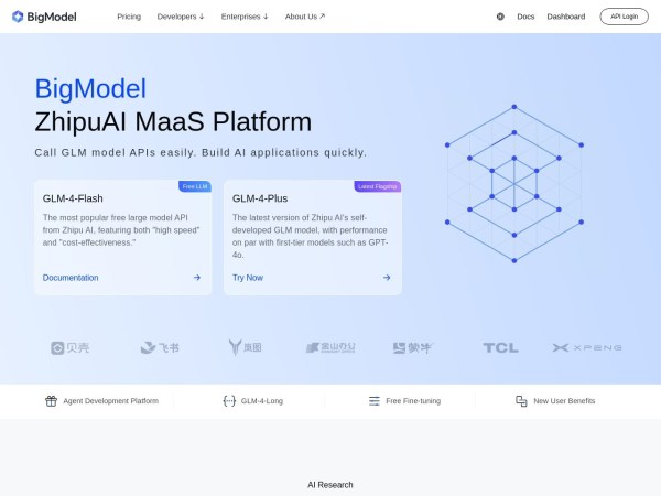 大模型开放平台-新一代国产自主通用AI开放平台,致力于将产品技术与行业场景双轮驱动的中国先进的认知智能技术和千行百业应用相结合,构建更高精度、高效率、通用化的AI开发新模式,实现智谱大模型的产