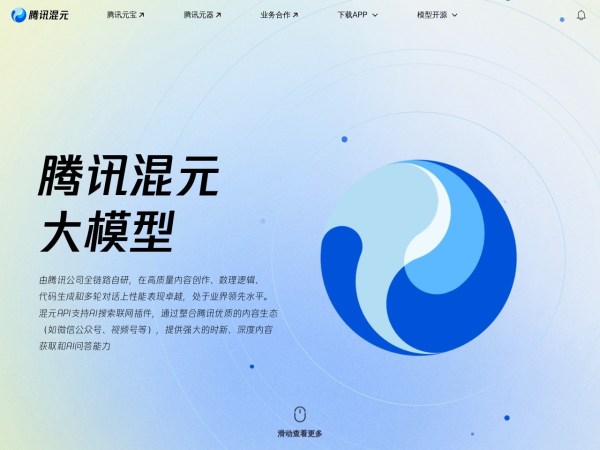 腾讯研发的大语言模型,具备强大的中文创作能力,复杂语境下的逻辑推理能力,以及可靠的任务执行能力